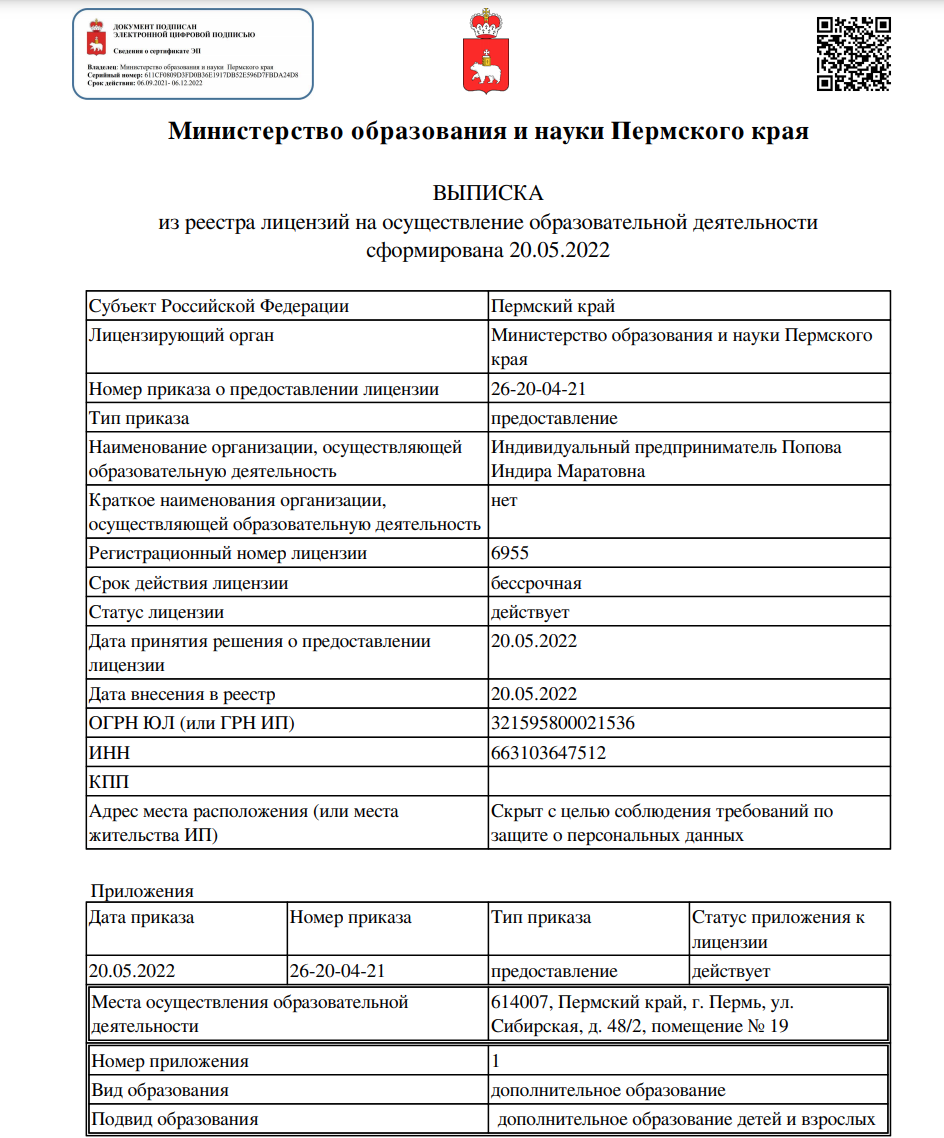 Учебное помещение ИП Попова И.М. “INDIAL” соответствуют обязательным нормам противопожарной безопасности и требованиям санитарно-эпидемиологических норм.